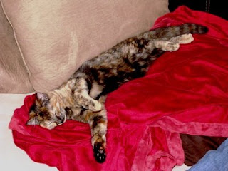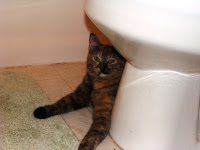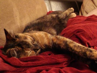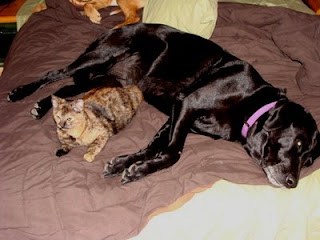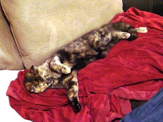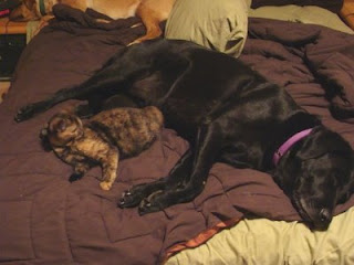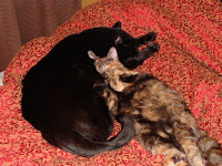 Tein loves the kitties and was so excited when Mini Kitty let her snuggle. We were all getting ready for bed, and Yellow has to be in daddy's spot until he comes to bed, and this time Mini was there to share.