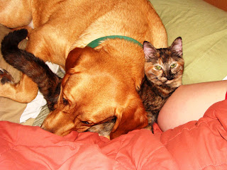 I treat the animals like they are my children. We ha a billion pictures of them and most of what they do is so cute. The more comfortable they all get with eachother, the better the pictures are getting. I know that Kitty Kitty was not a fan of Mini when she arrived, but they seem to have adjusted nicely. An Yellow is no longer terrified of Mini, who is getting big from what I am told. I don't really notice until I wake up with her standing on me. She is definately bigger than when she arrived. It has been about 2 months, so I would say great progress.