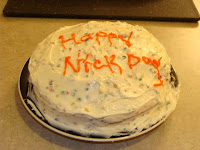 We had a small Birthday party for Nick this year. It was actually quite nice, and I guess that is what happens when you get older. He turned 27 this year and is on the down hill slide to 30. Which is crazy becuase for the most part we still see ourselves as the 20 years olds, with less street racing on weekends. I like to look back and see where our journey has brought us, we are two completely different people then we were then, but definately for the better. Nick is spoiled as always and got his PS3 as a combo present, seeing as his birthday is only 10 days before Christmas. The rest of his presents would be what I would classify as grown up presents. He got tabs for the car, and I think bullets from his dad, but I am not really sure. I know the present he is most excited about it the one that awaits him in Kent.